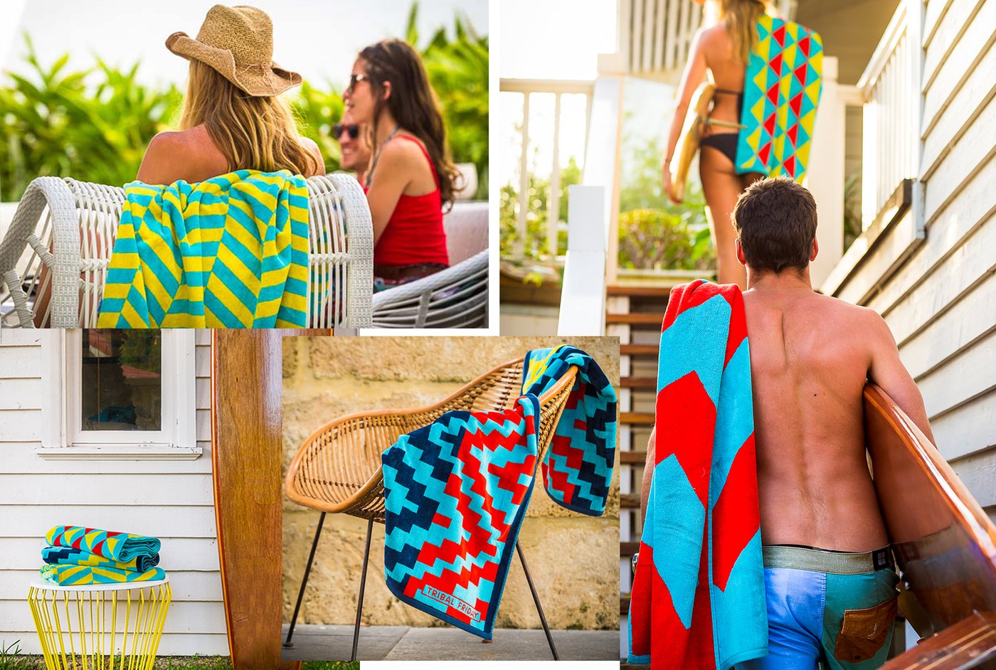 TRIBAL FRIDAY celebrates bright colour, bold dynamic print and premium quality. Our luxurious woven beach towels are inspired by geometric design and the vibrancy of beach culture. TRIBAL FRIDAY’s range is a series of four colourful and unique designs, 100% cotton at a juicy 600gsm luxury towel weight, available in either Luxury Velour or the Classic Terry finish. Tribal Friday was born and designed in Bondi Beach and made in the textile mecca of India.